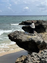 恐る恐る岩の先端に向かってます なかなかの風景ですね |