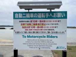ふと見ると 新しい注意看板が出てました 夜間の自動二輪車の利用が出来なくなったようです バイク乗りの楽しいポイントなんですが いろいろ問題が出てたんでしょうね |